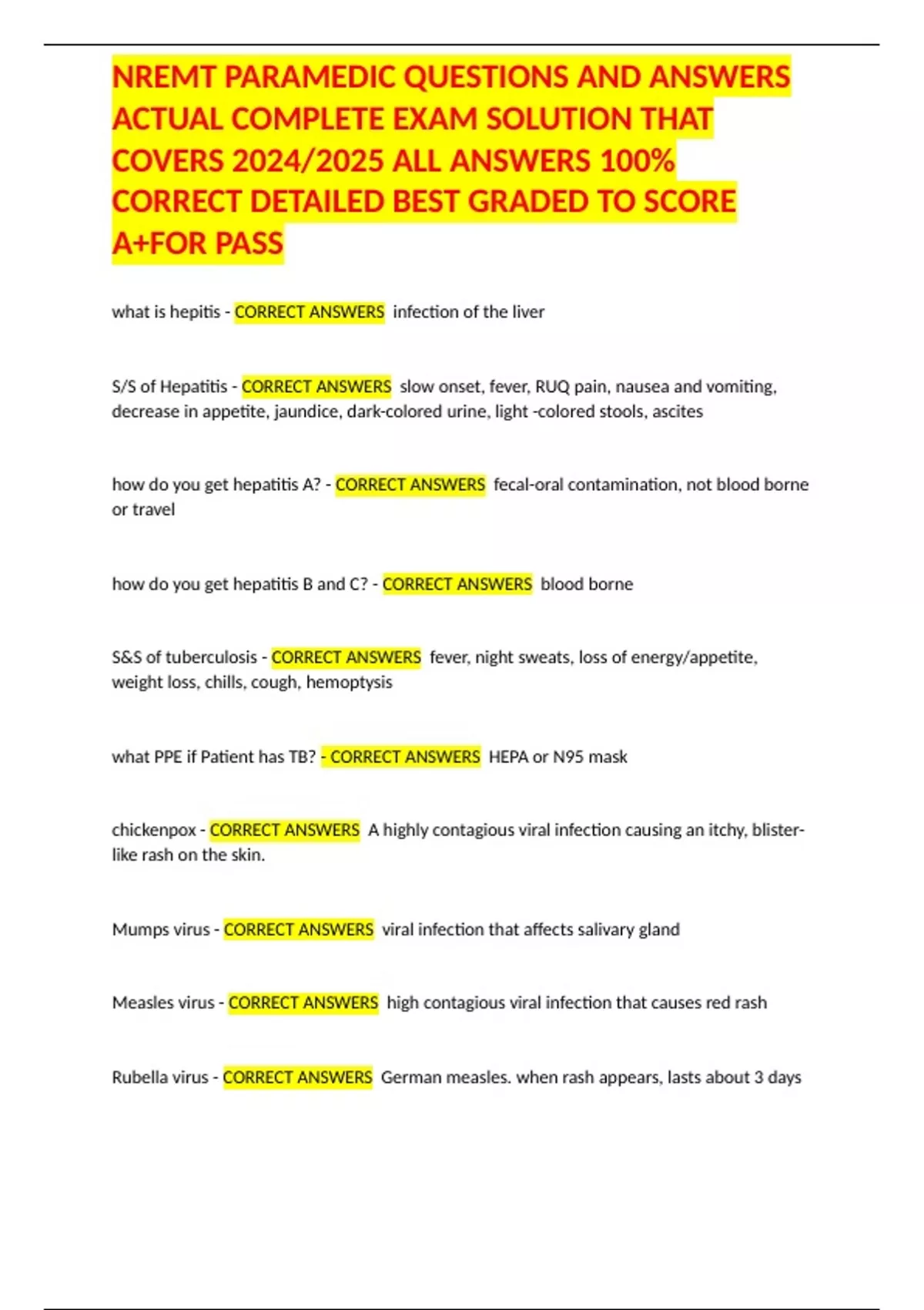 , NREMT PARAMEDIC QUESTIONS AND ANSWERS
