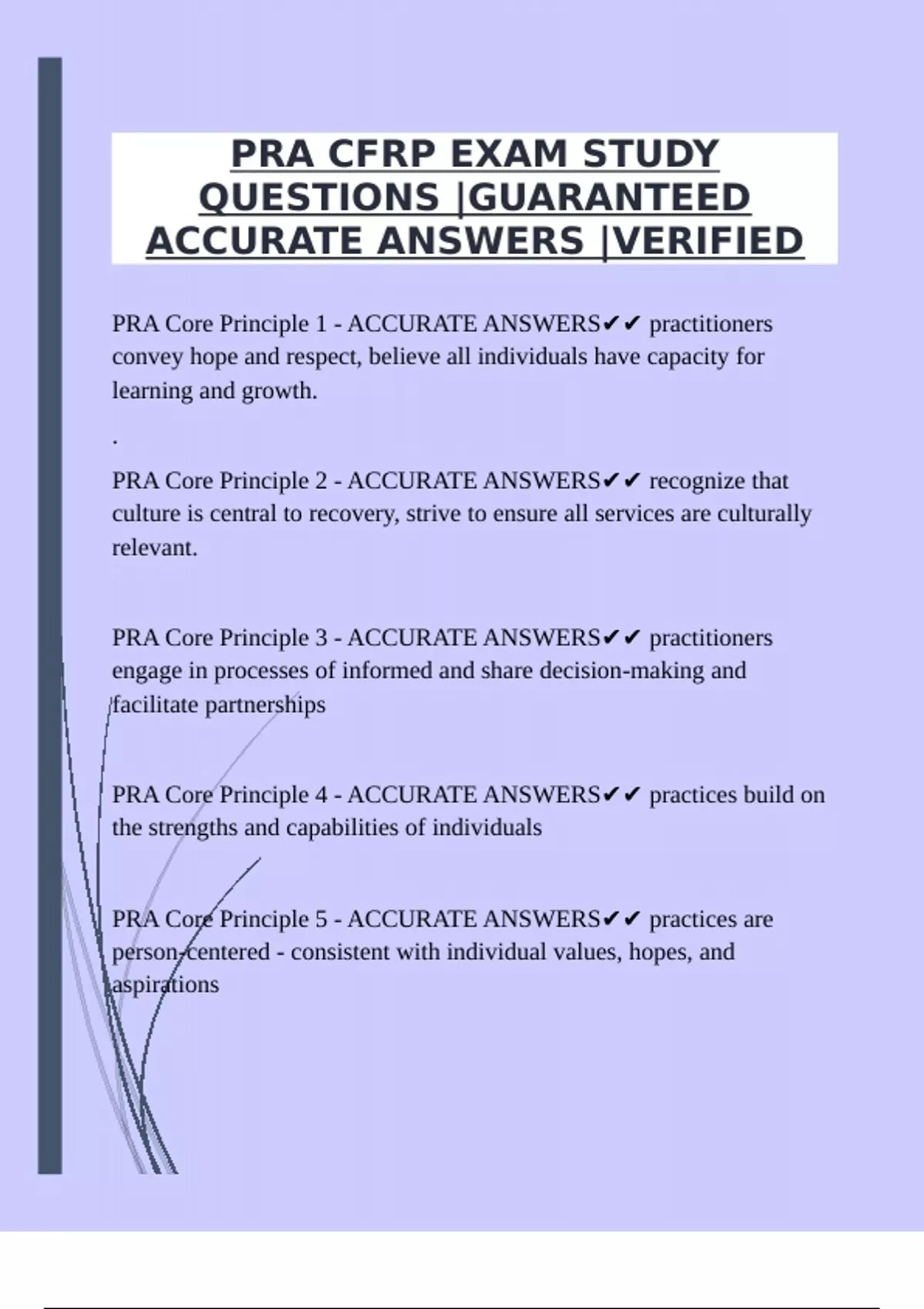PRA CFRP EXAM STUDY QUESTIONS |GUARANTEED ACCURATE ANSWERS |VERIFIED