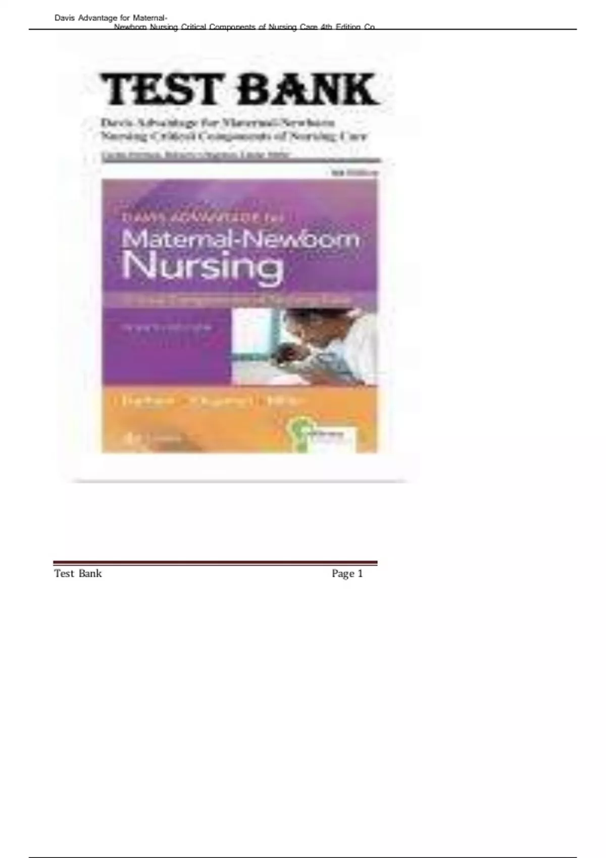Test Bank for Davis Advantage for Maternal Newborn Nursing: Critical Components of Nursing Care, 4th Edition by Durham - Chapman - Miller