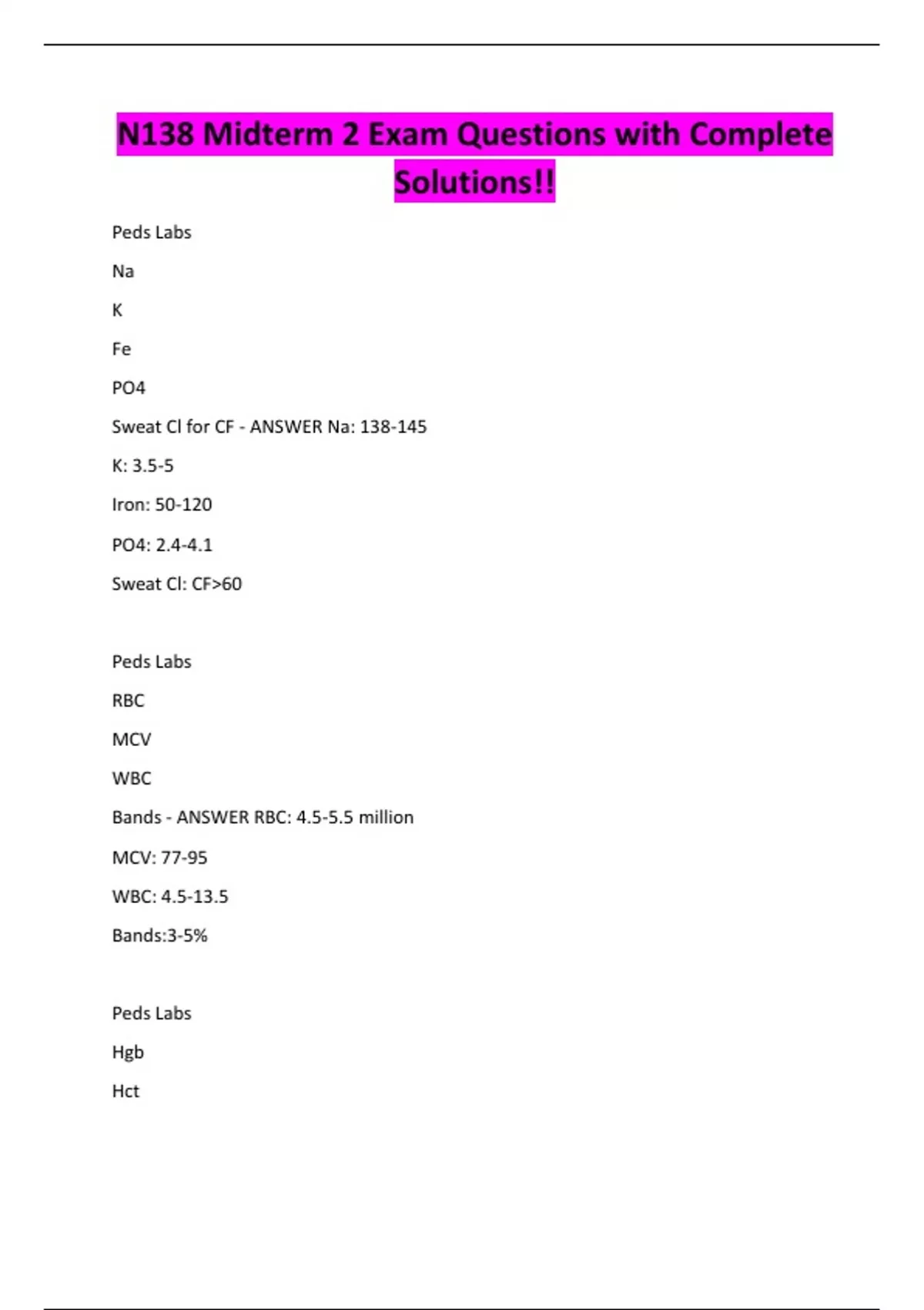 N138 Midterm 2 Exam Questions with Complete