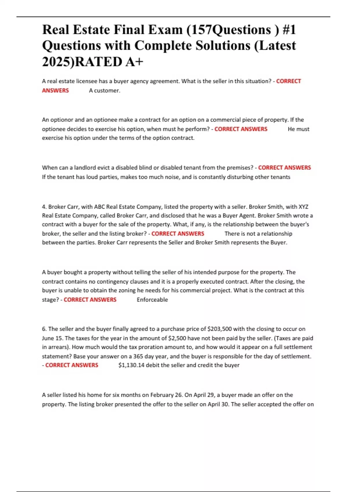 6. The seller and the buyer finally agreed to a purchase price of $203,500 with the closing to occur on
