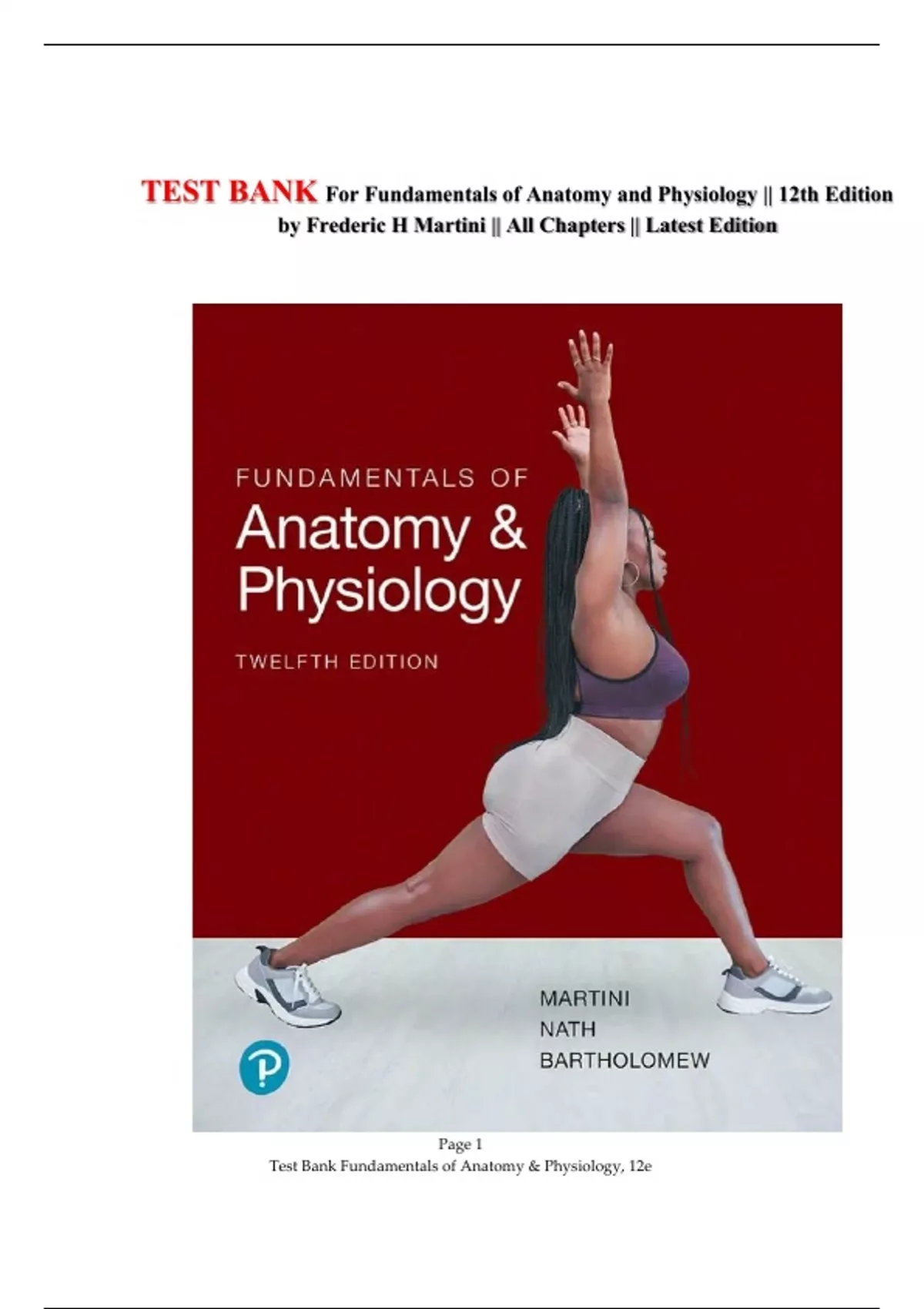 Test bank for Fundamentals of Anatomy and Physiology (12th Edition) by Frederic H. Martini, updated to reflect the latest 2025 edition. Includes verified multiple-choice questions and correct answers for all chapters, covering topics such as body systems, cellular and molecular biology, organ function, and physiological processes. Perfect for students in nursing, pre-med, or health science programs preparing for exams and assessments.