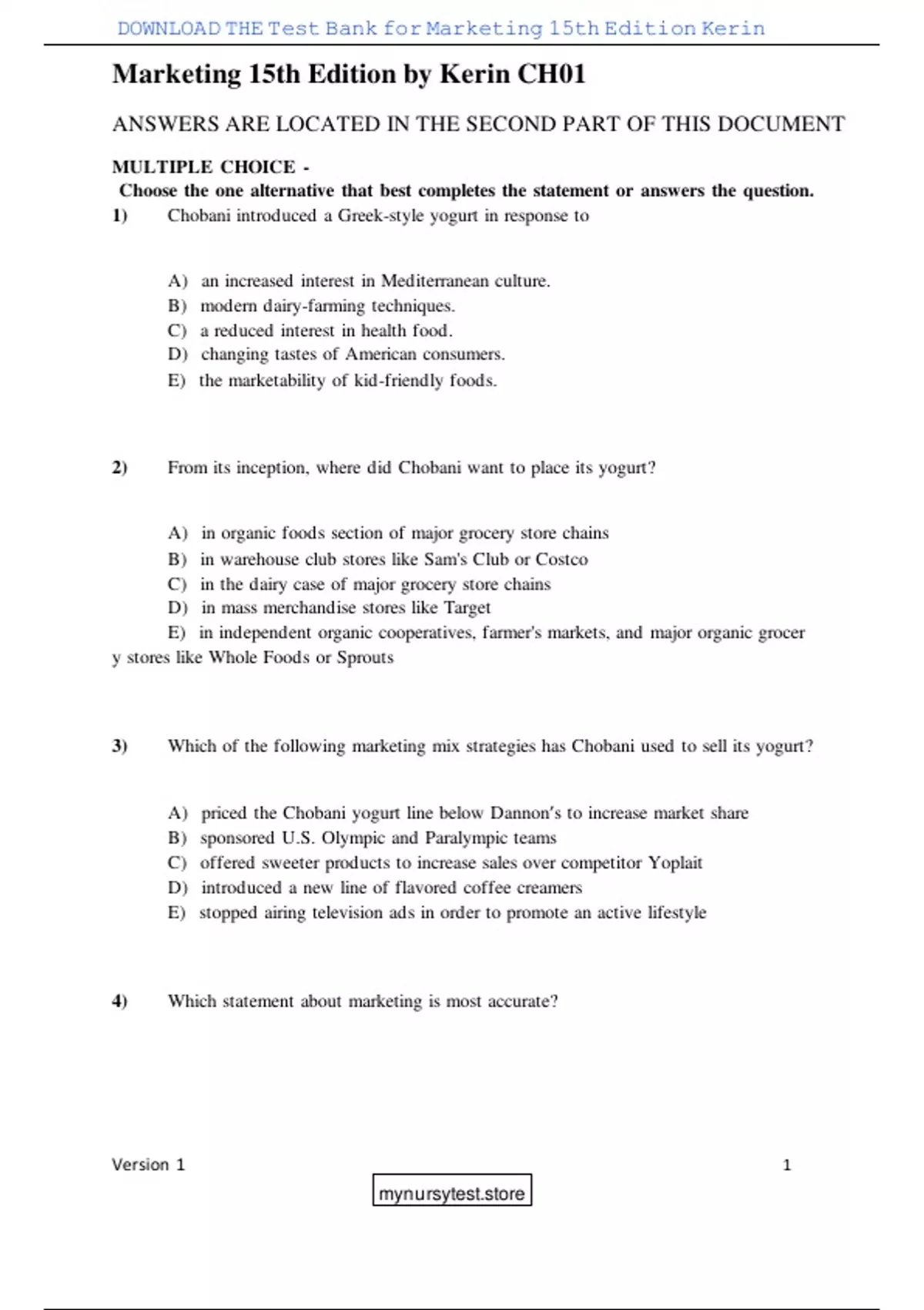 DOWNLOAD THE Test Bank for Marketing 15th Edition Kerin