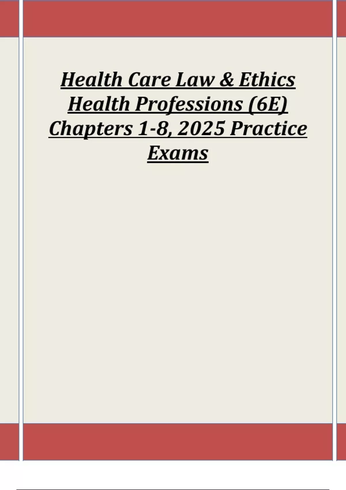 Health Care Law & Ethics Health Professions (6E) Chapters 1-8, 2025 Practice Exams