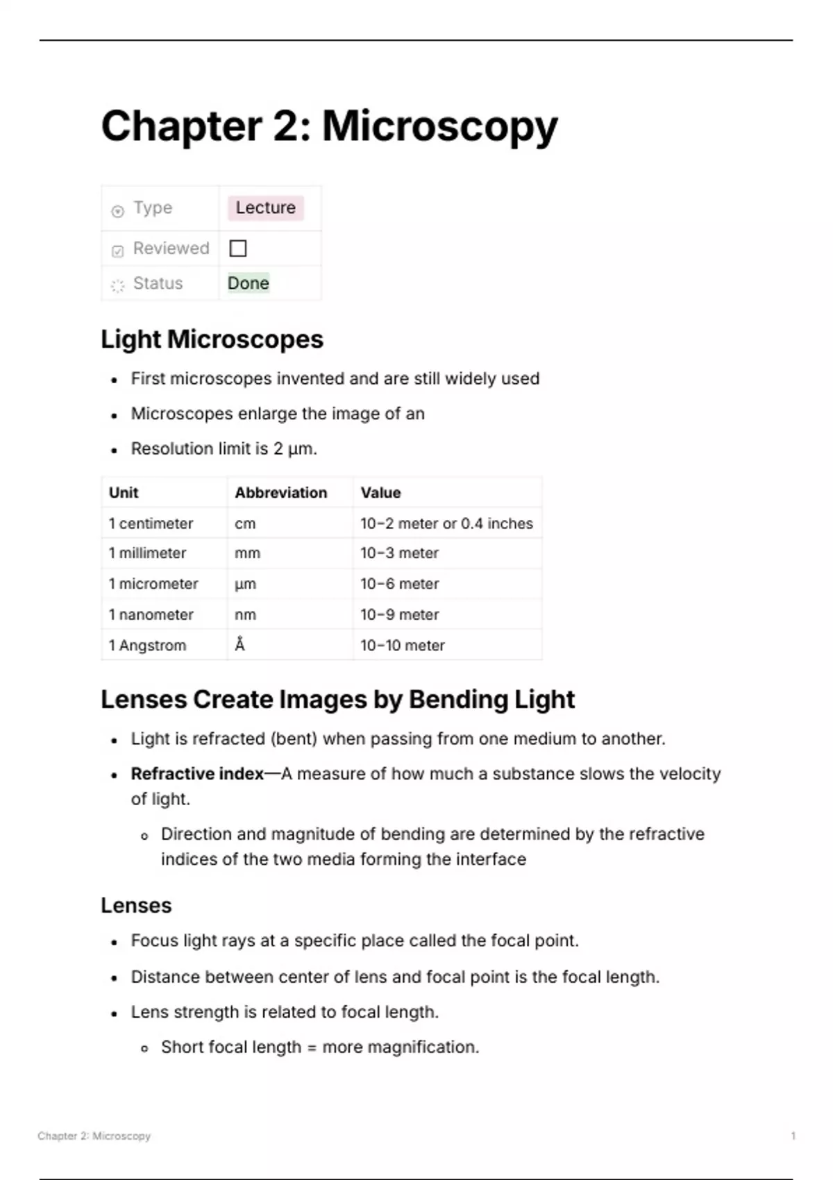 Chapter 2: Microscopy 1