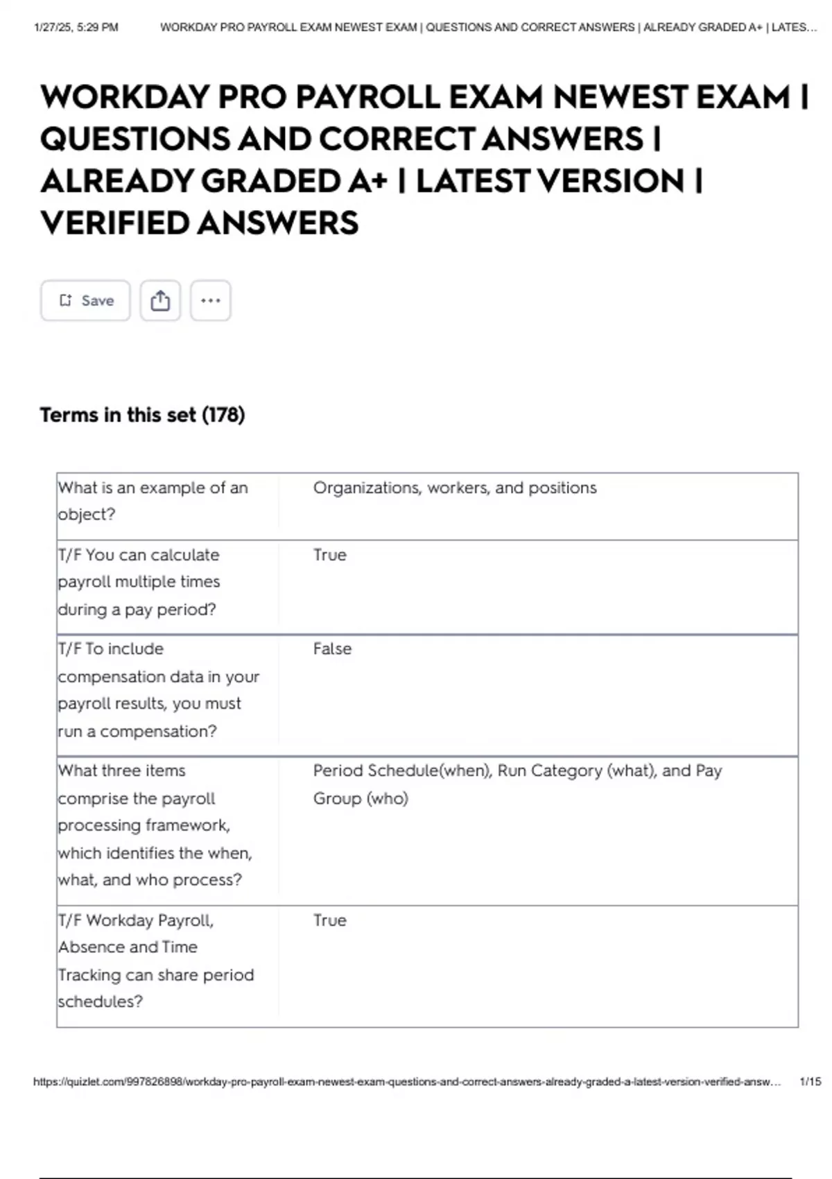 1/27/25, 5:29 PM WORKDAY PRO PAYROLL EXAM NEWEST EXAM | QUESTIONS AND CORRECT ANSWERS | ALREADY GRADED A+ | LATES…