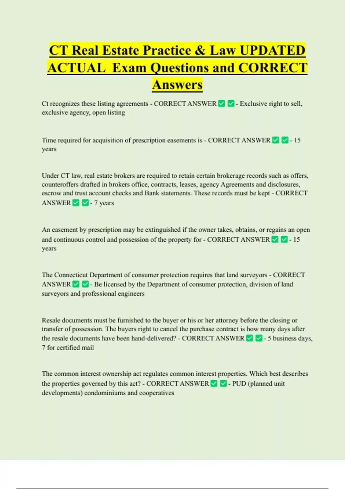 Ct recognizes these listing agreements - CORRECT ANSWER - Exclusive right to sell,
