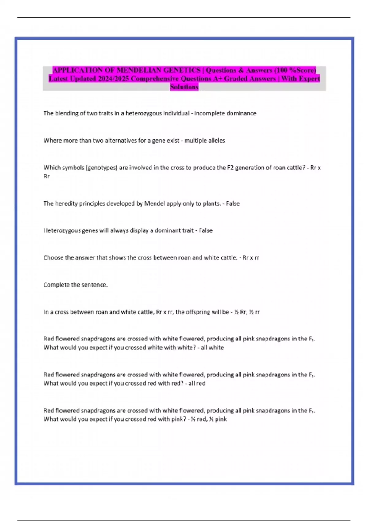 APPLICATION OF MENDELIAN GENETICS | Questions & Answers