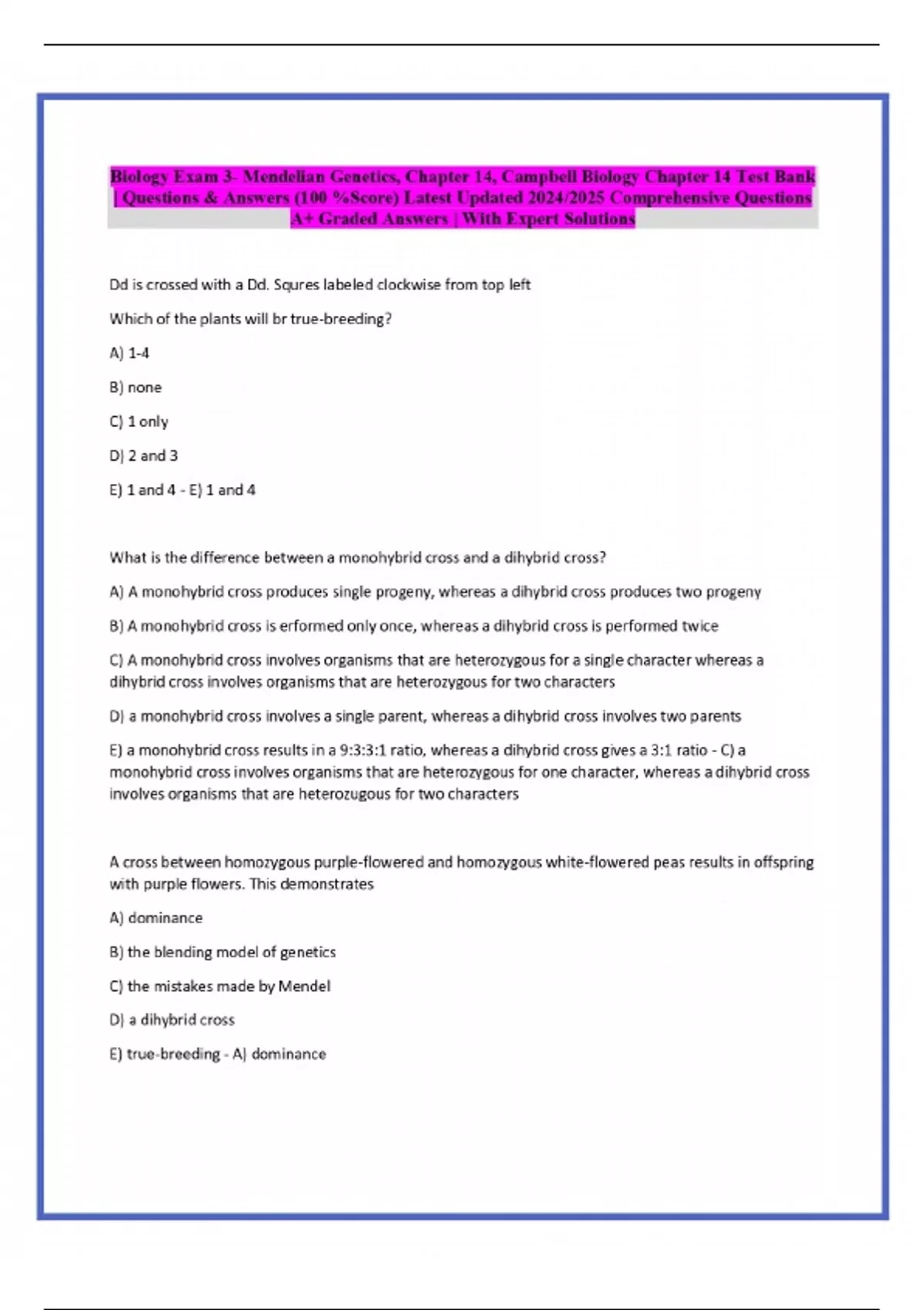 Biology Exam 3- Mendelian Genetics, Chapter 14, Campbell Biology Chapter 14 Test Bank | Questions & Answers