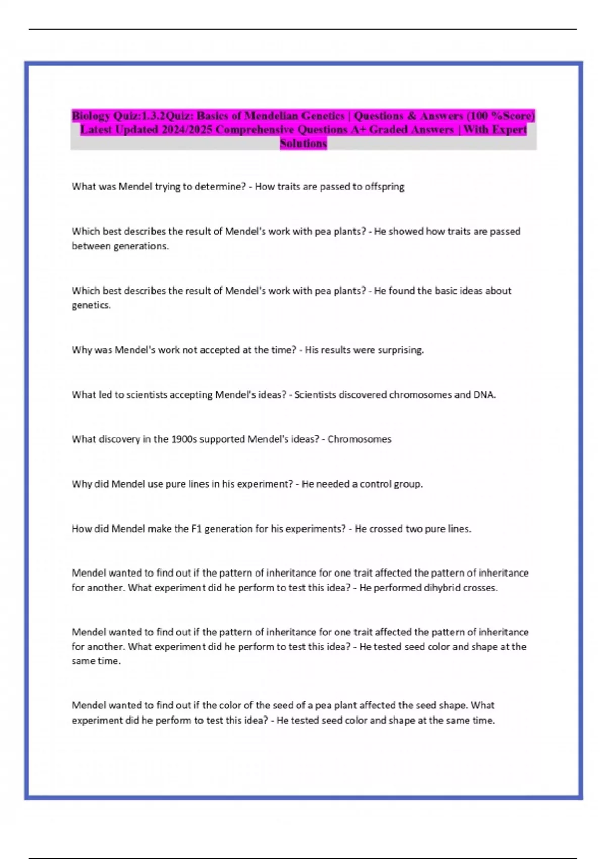 biology quiz132quiz basics of mendelian geneti