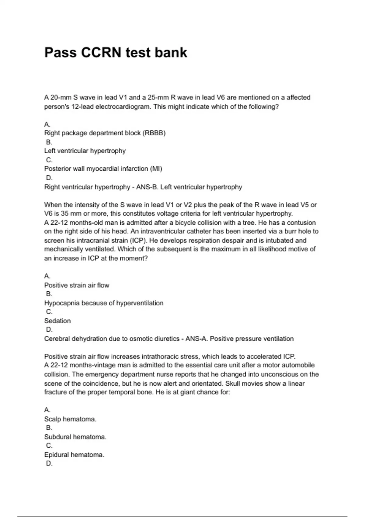 Right ventricular hypertrophy - ANS-B. Left ventricular hypertrophy