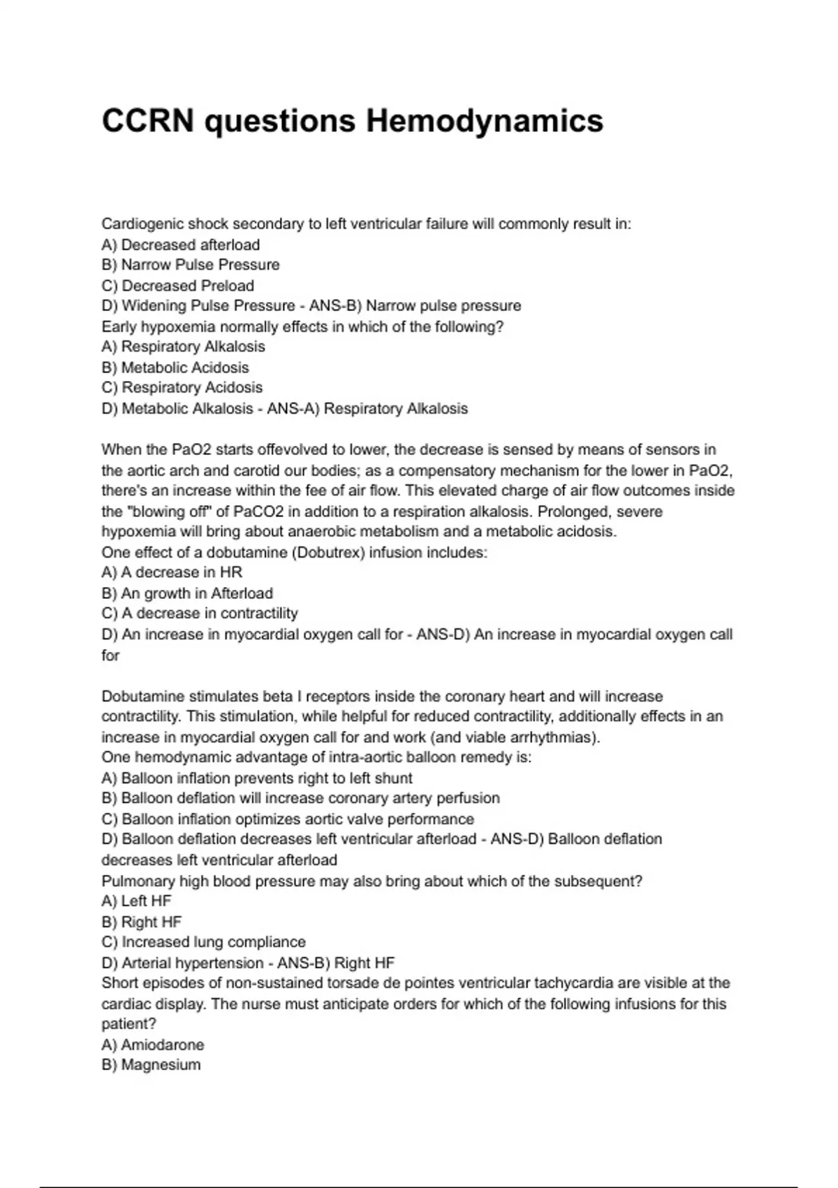 D) Balloon deflation decreases left ventricular afterload - ANS-D) Balloon deflation