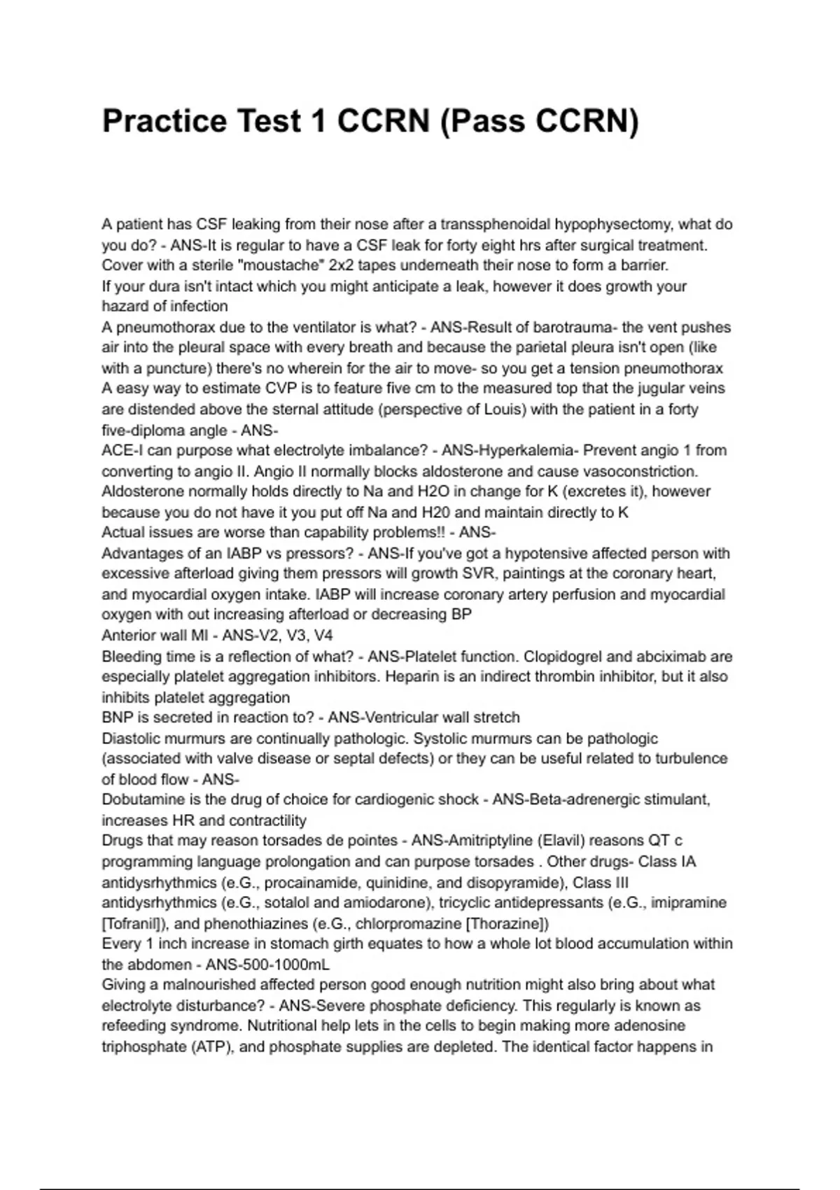 ANS-You keep the patient hypervolemic with a PAOP (LV preload) extra than 12mmHg