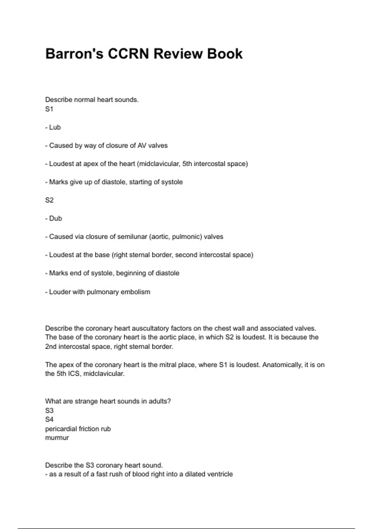 - Loudest at apex of the heart (midclavicular, 5th intercostal space)