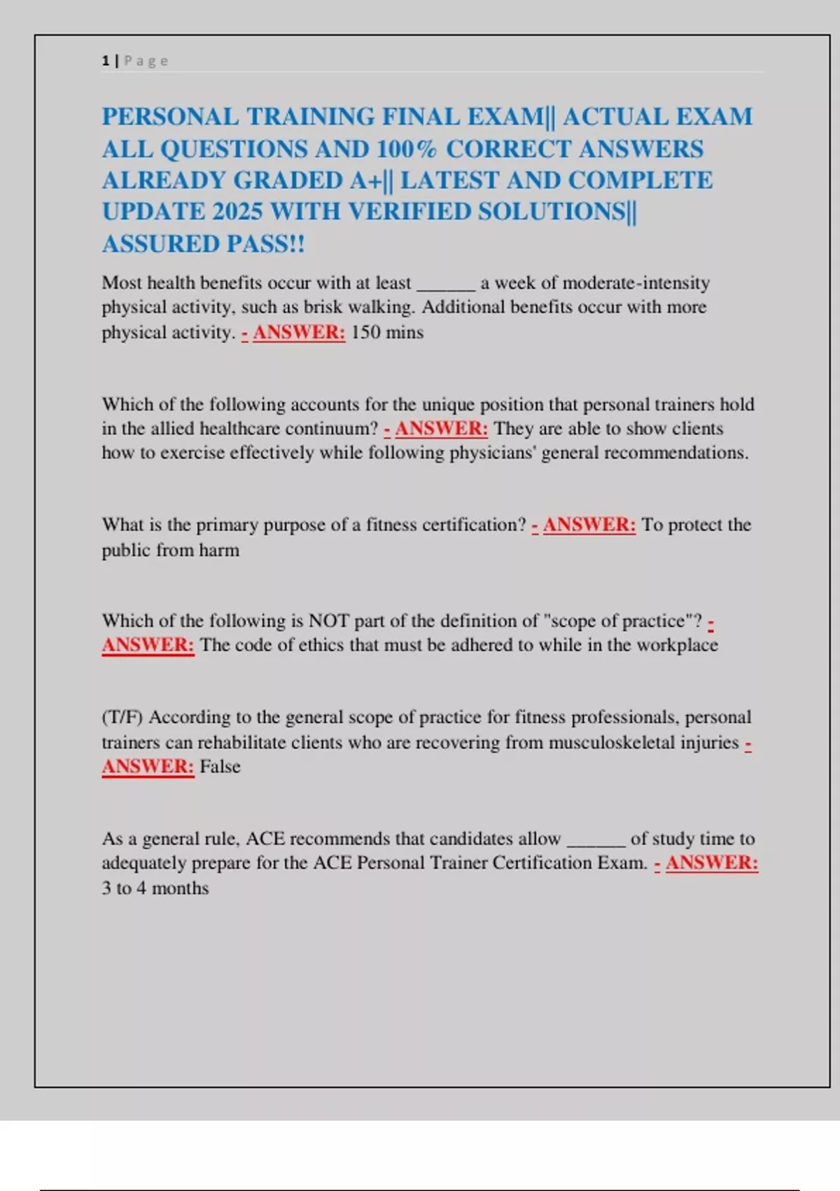 PERSONAL TRAINING FINAL EXAM|| ACTUAL EXAM