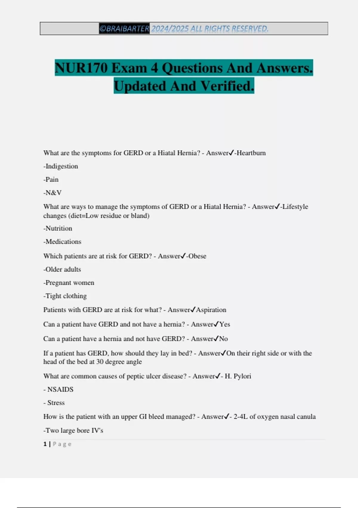 NUR170 Exam 4 Questions And Answers.