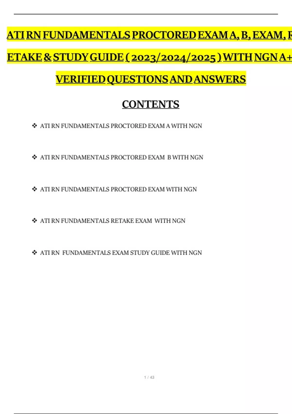 ATI RN FUNDAMENTALS EXAM STUDY GUIDE WITH NGN