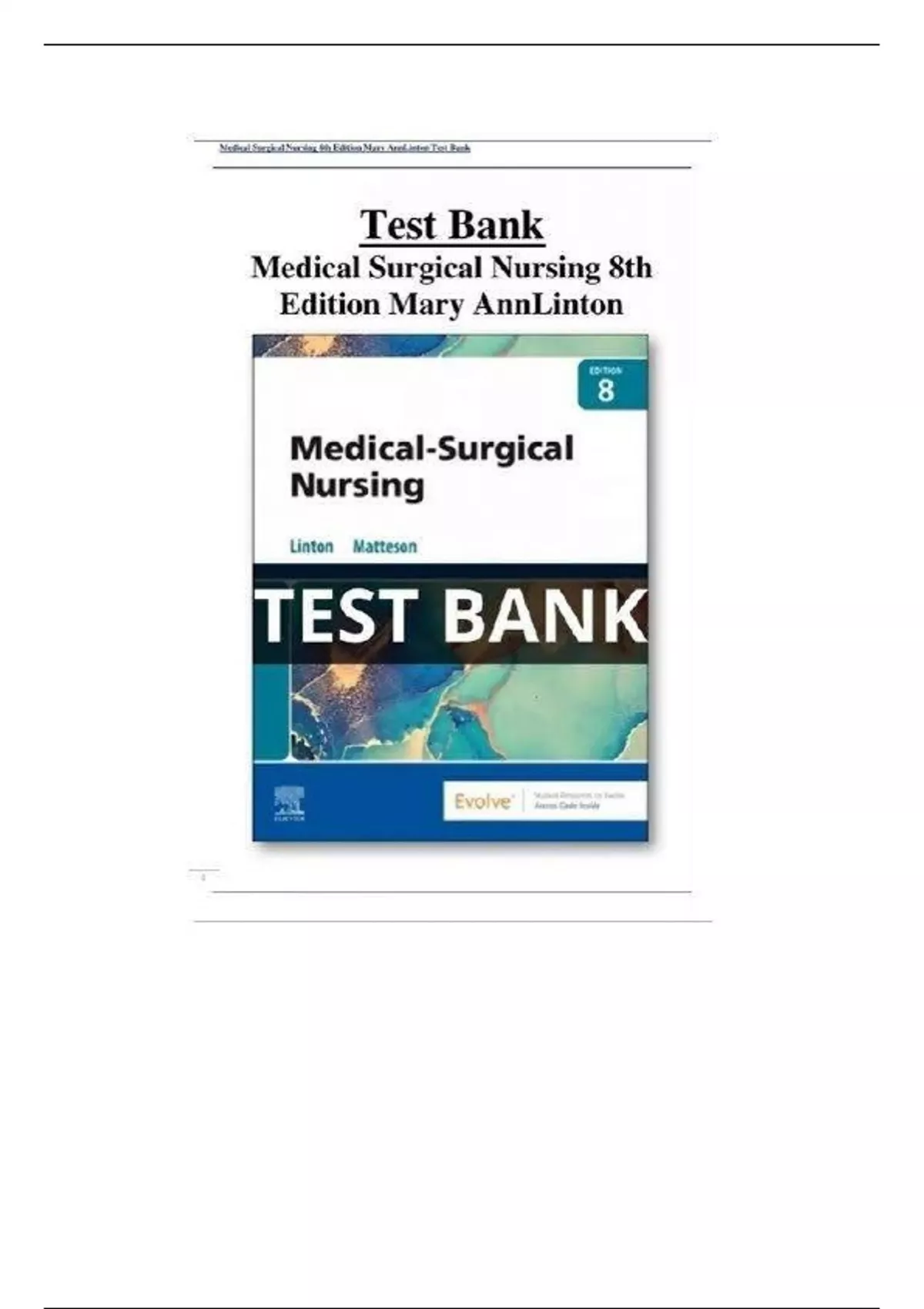 Test Bank for Medical-Surgical Nursing 8th Edition Linton | 100% verified chapters | 2024/2025