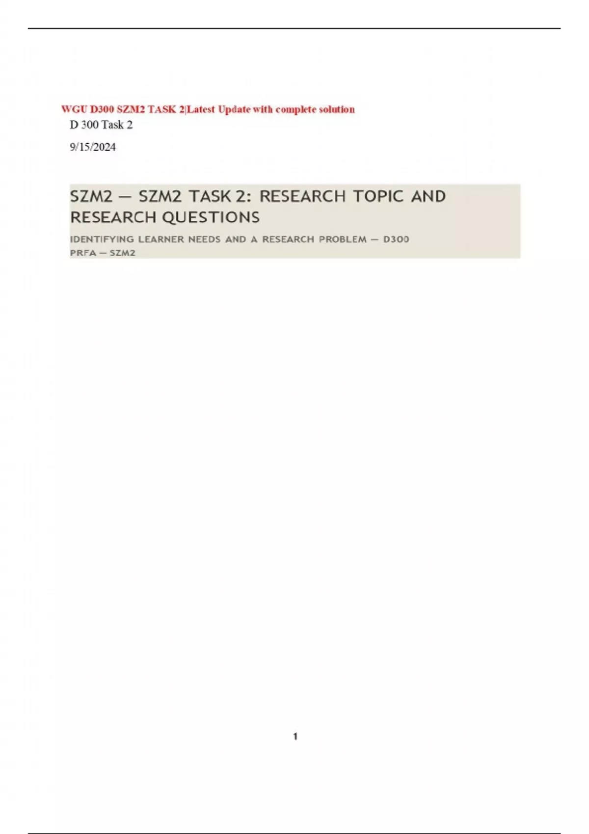 WGU D300 SZM2 TASK 2|Latest Update with complete solution