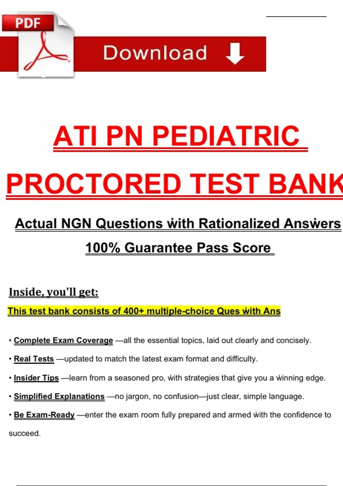 ATI PN Pediatric Proctored Exam TEST BANK (400+ Ques & Ans) (2023 / 2024), 100% Guarantee Pass