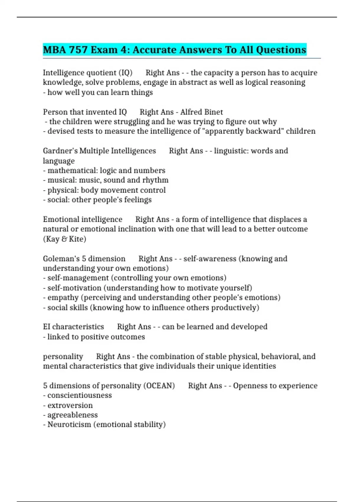 MBA 757 Exam 4: Accurate Answers To All Questions