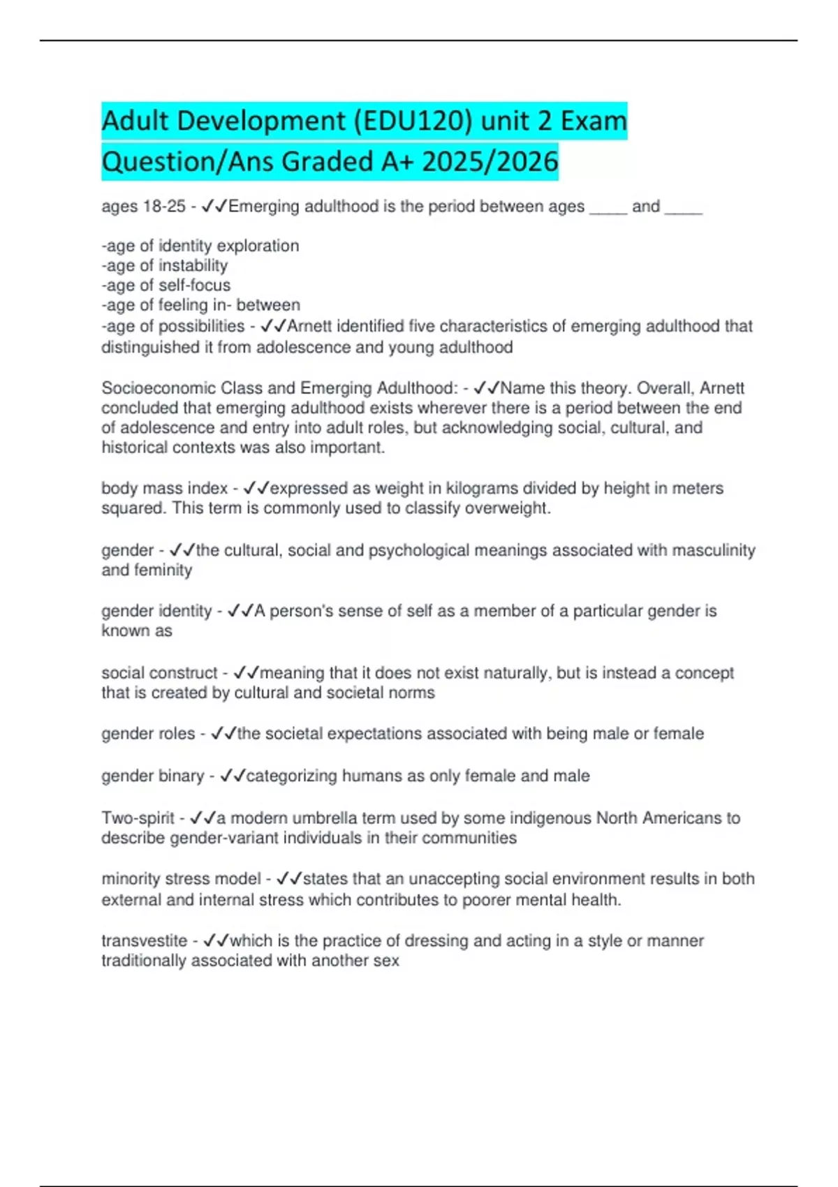Socioeconomic Class and Emerging Adulthood: - ✔✔Name this theory. Overall, Arnett