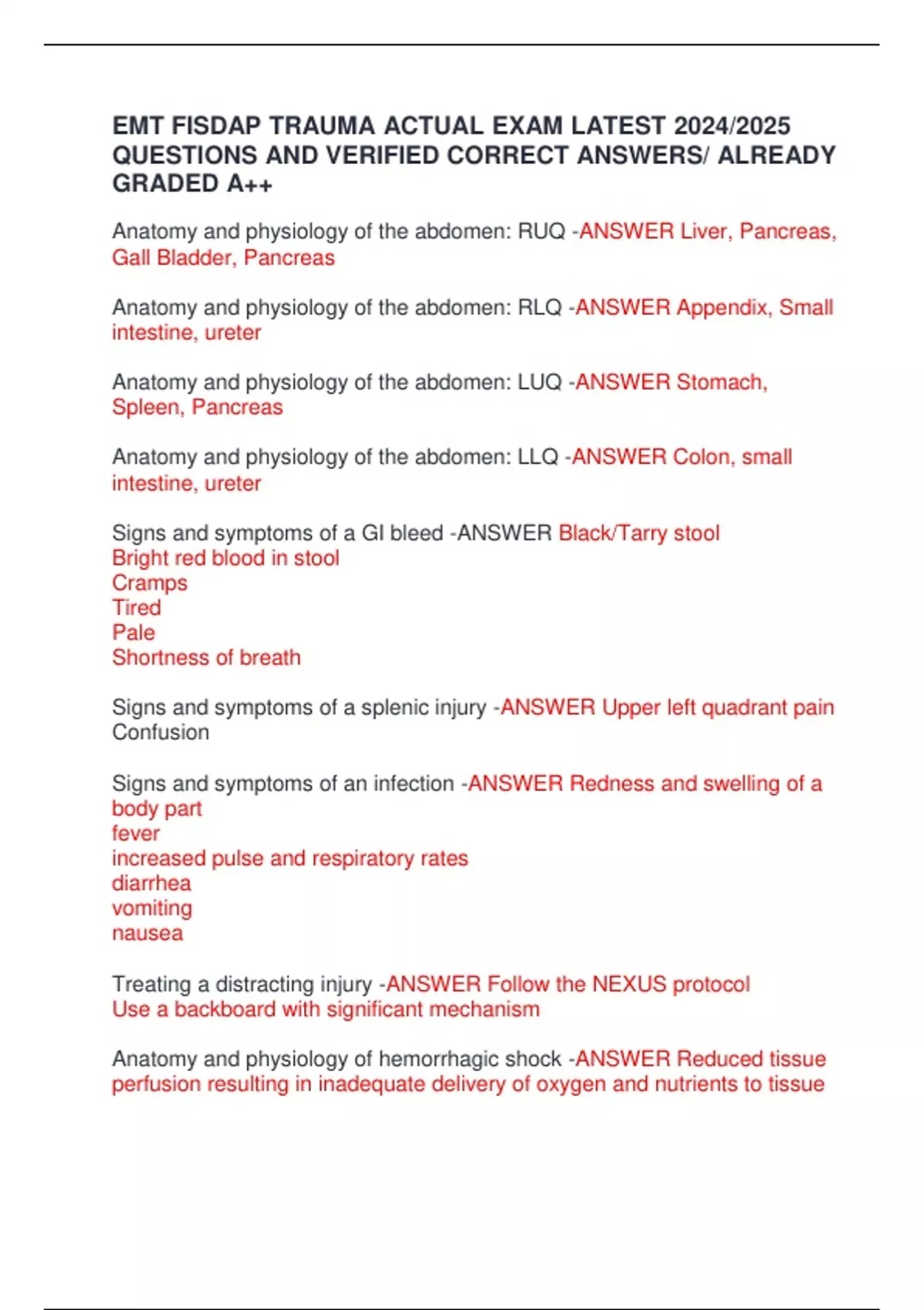 EMT FISDAP TRAUMA ACTUAL EXAM LATEST 2024/2025