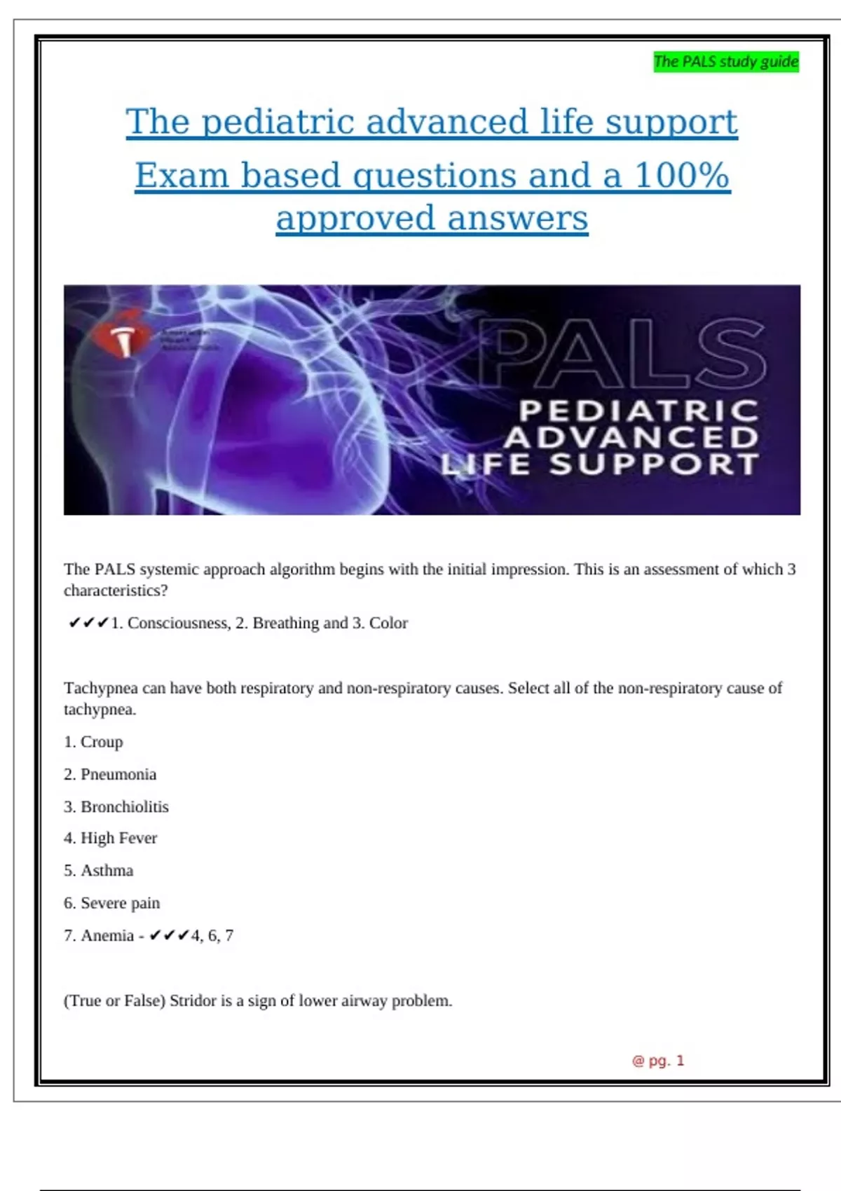 Pediatric advanced life support Exam based questions and a 100% approved answers