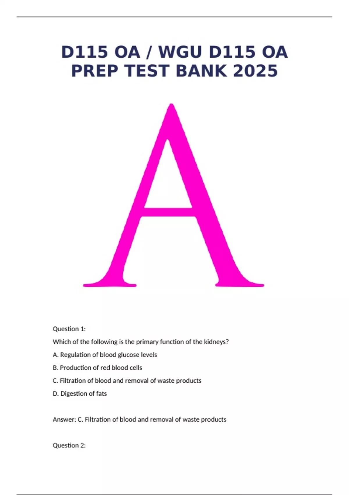 D115 OA / WGU D115 OA PREP TEST BANK 2025 WITH REAL EXAM QUESTIONS AND CORRECT ANSWERS / WGU D115 ADVANCED PATHOPHYSIOLOGY OA PREP(NEW!)
