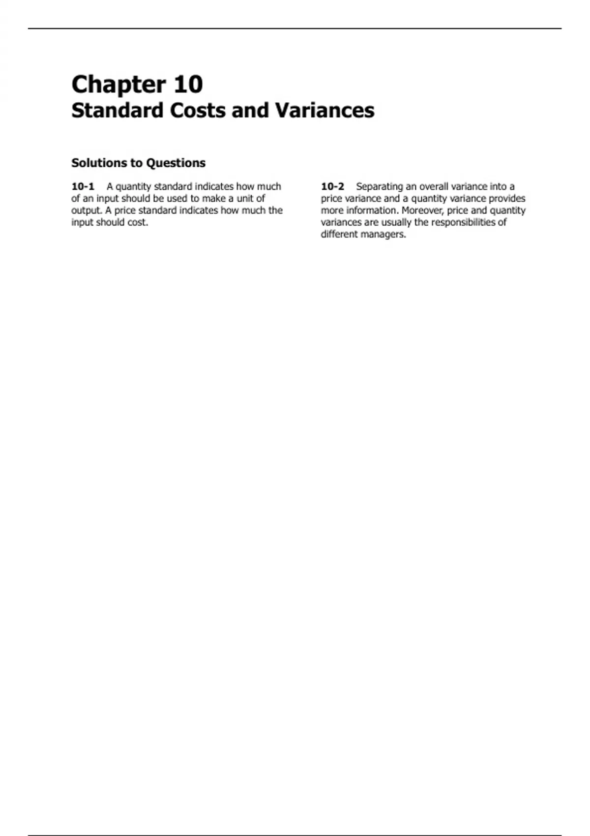 Managerial Accounting 18th Edition, Solutions Manual, Chapter 10