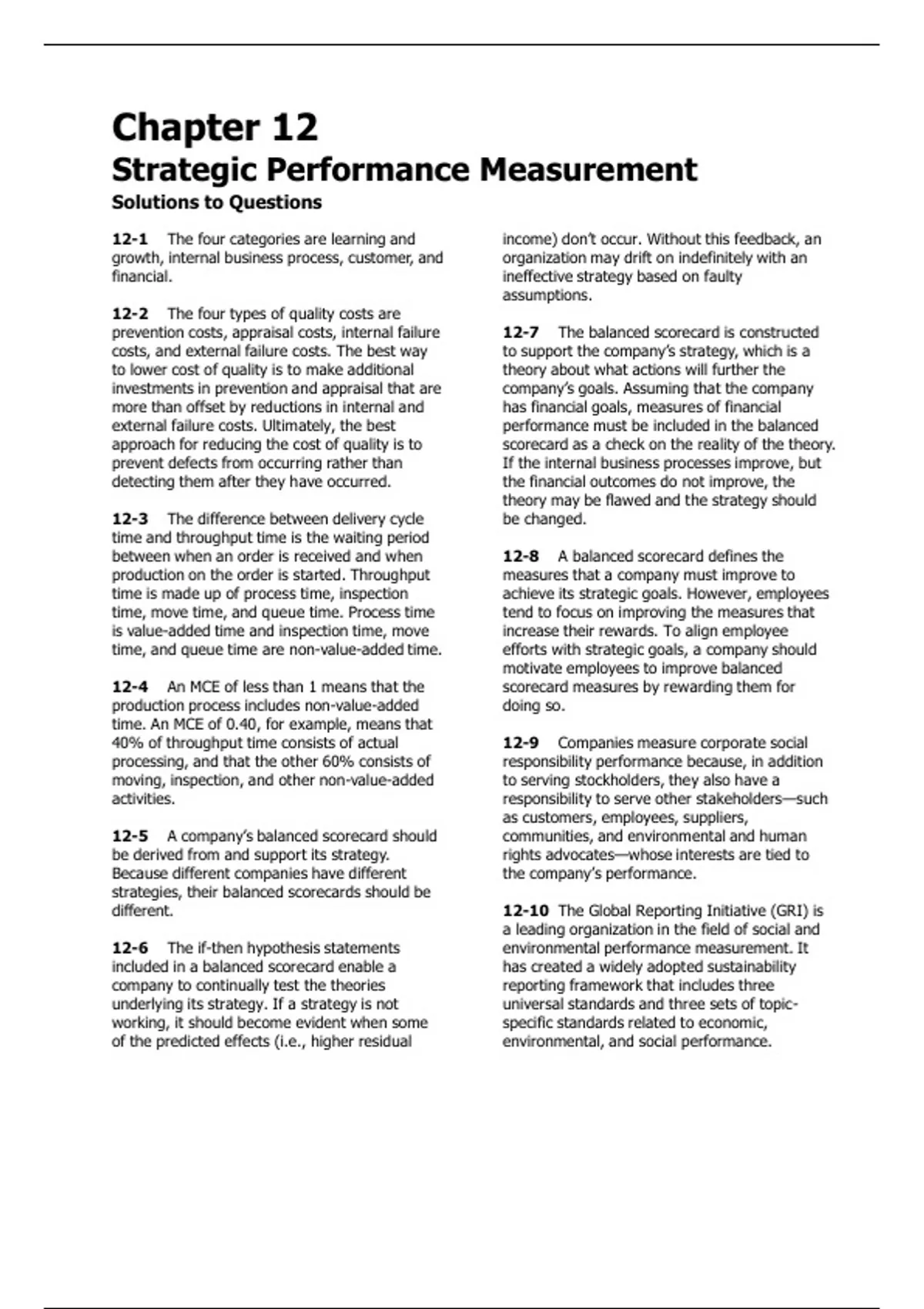 12-5 A company’s balanced scorecard should communities, and environmental and human