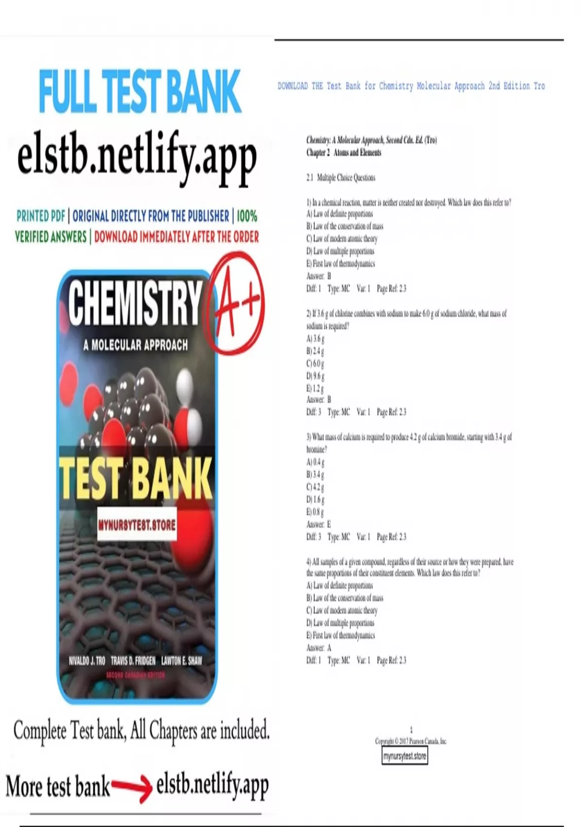 , DOWNLOAD THE Test Bank for Chemistry Molecular Approach 2nd Edition Tro DOWNLOAD THE Test Bank for Chemistry Molecular Approach 2nd Edition Tro