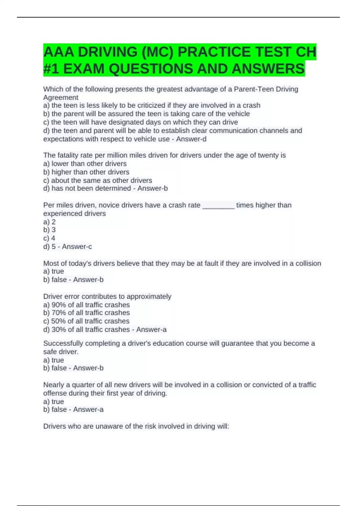 AAA DRIVING (MC) PRACTICE TEST CH #1 EXAM QUESTIONS AND ANSWERS