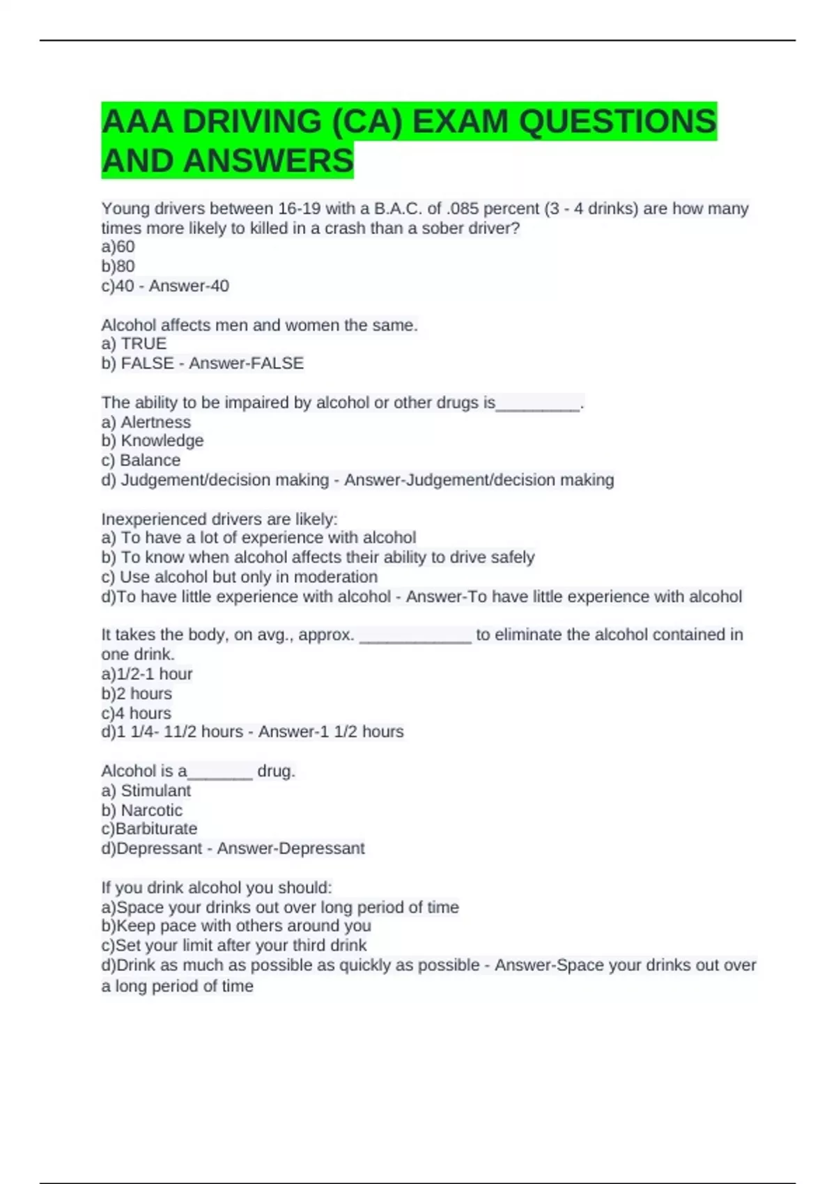 AAA DRIVING (CA) EXAM QUESTIONS AND ANSWERS
