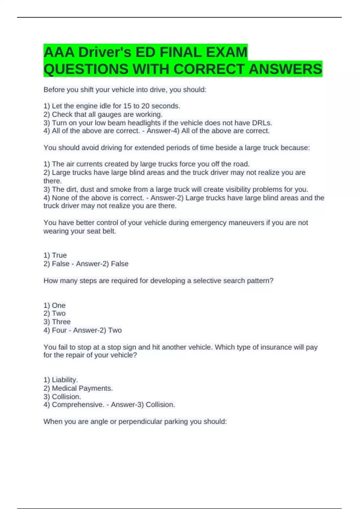 AAA Driver's ED FINAL EXAM