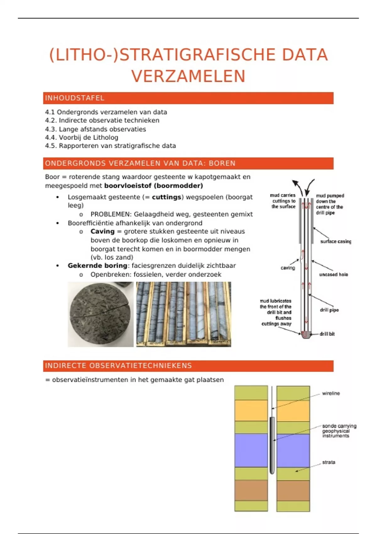 samenvatting van hoofdstuk 4 'lithostratigrafische data verzamelen' van het vak stratigrafie gegeven door prof Thijs Vandenbroucke.