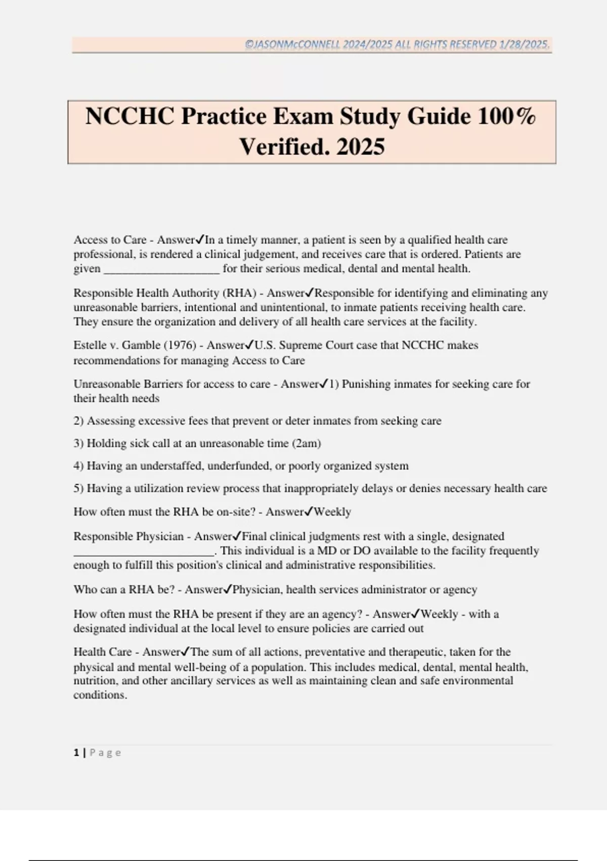 Estelle v. Gamble (1976) - Answer✔U.S. Supreme Court case that NCCHC makes
