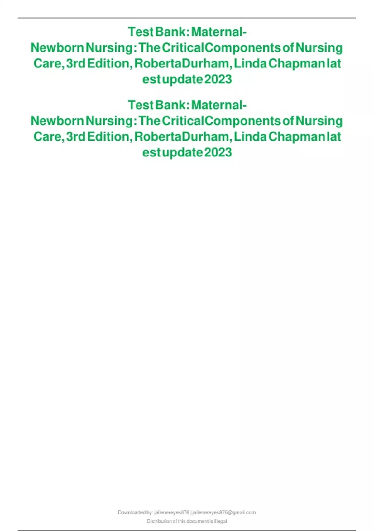 , Test Bank: Maternal-Newborn Nursing: The Critical