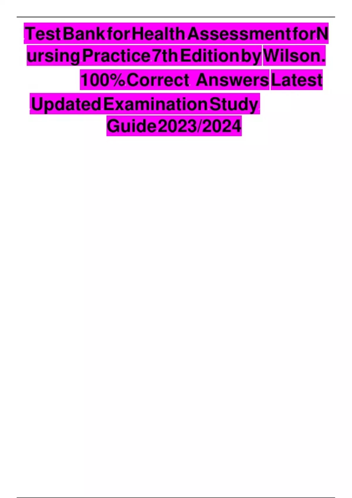 Test Bank For Health Assessment for Nursing Practice 7th Edition By Susan Fickertt Wilson Jean Foret Giddens | 9780323661195 | Chapter 1- 24 | All Chapters with Answers and Rationals