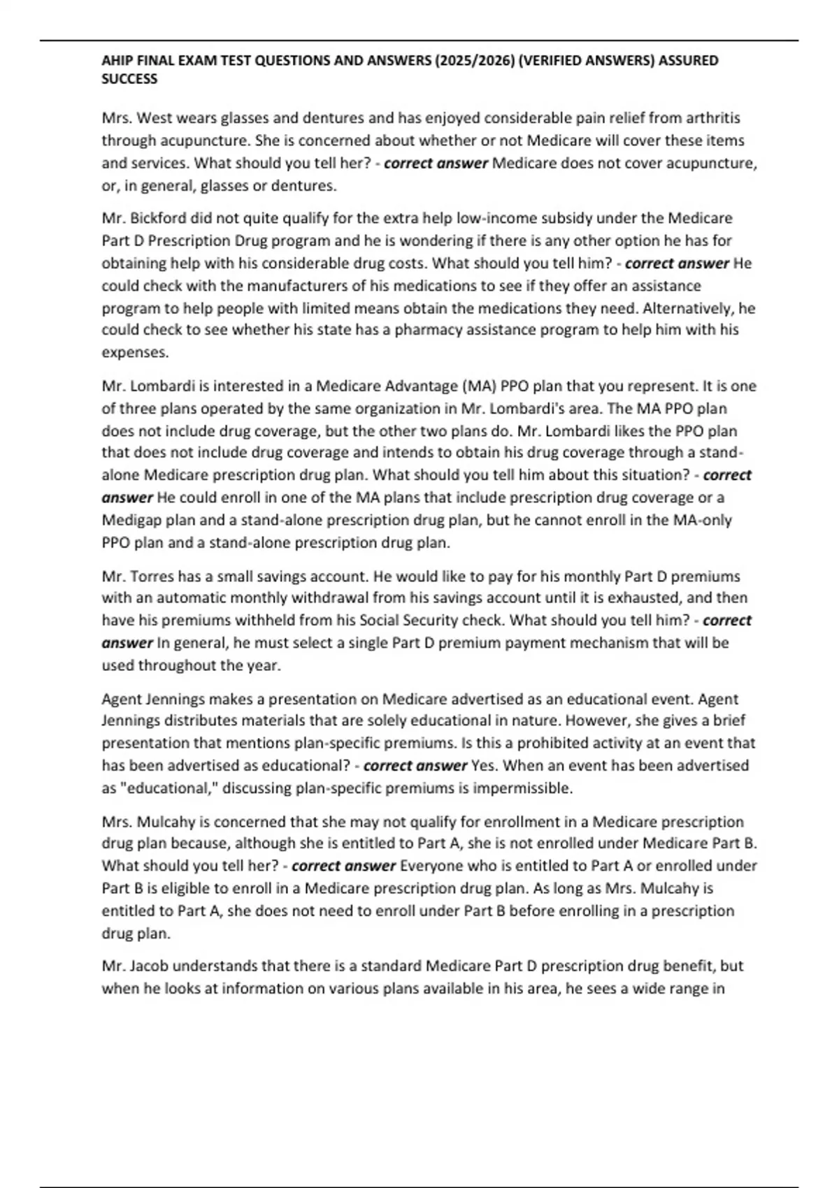 , AHIP FINAL EXAM TEST QUESTIONS AND ANSWERS (2025/2026) (VERIFIED ANSWERS) ASSURED