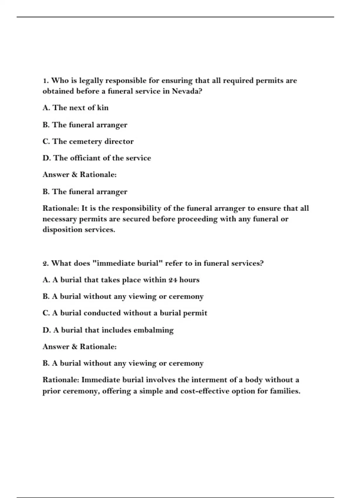 Rationale: Nevada law requires that funeral arrangers retain records of