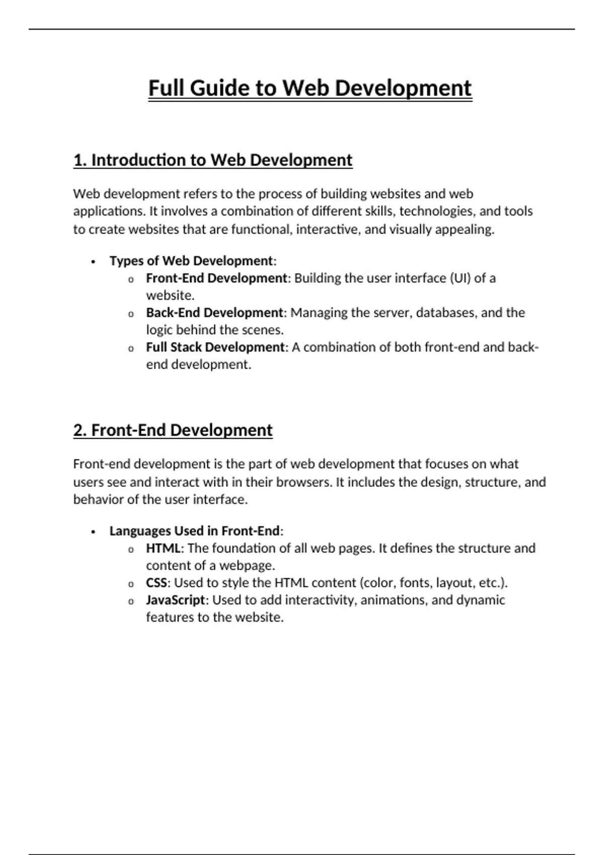 1. Introduction to Web Development