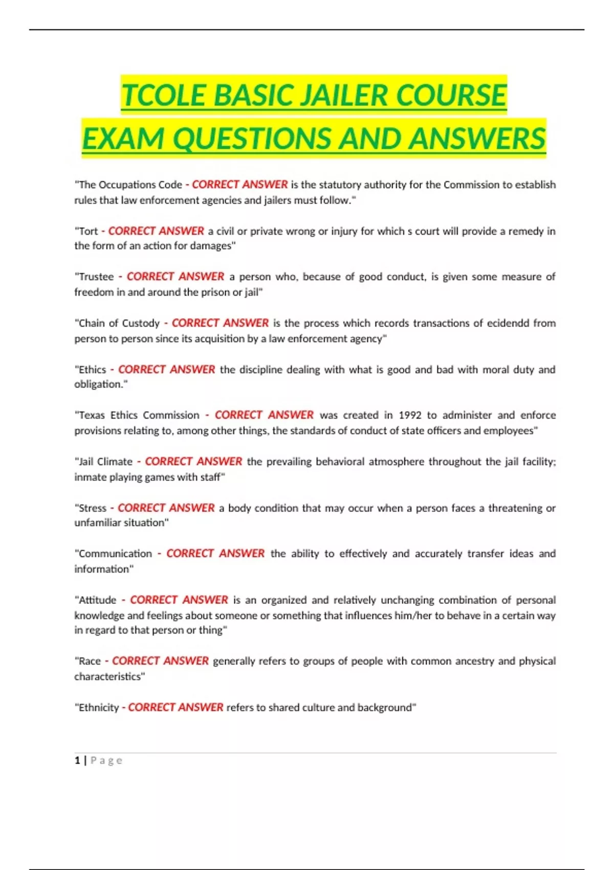 "Jail Climate - CORRECT ANSWER the prevailing behavioral atmosphere throughout the jail facility;