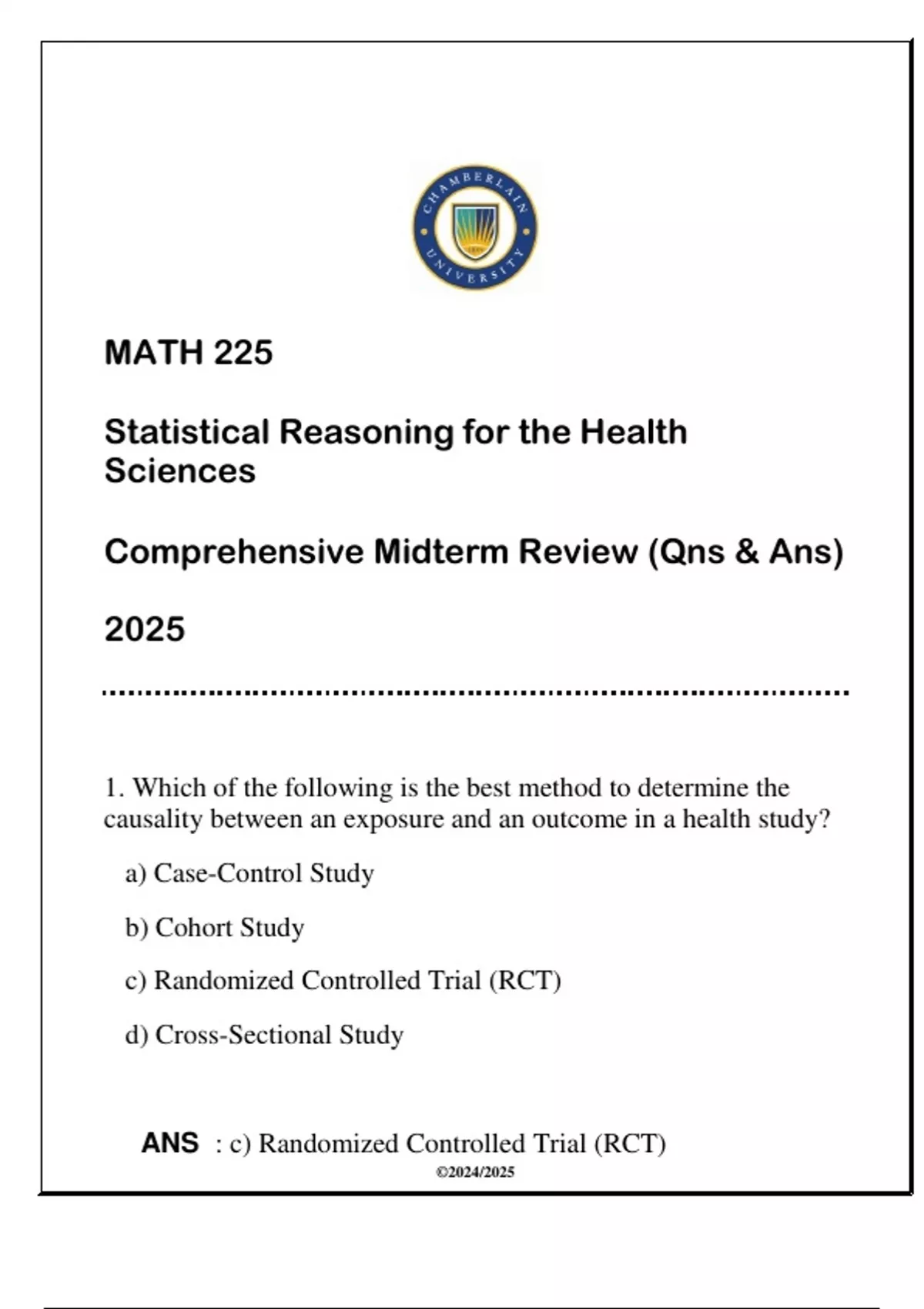 ANS : c) Randomized Controlled Trial (RCT)