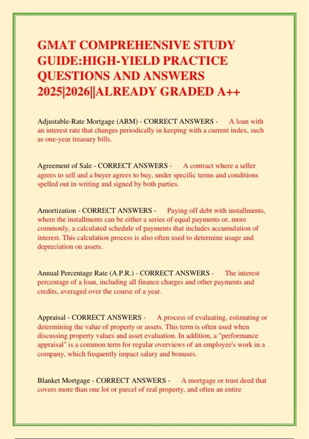 GMAT COMPREHENSIVE STUDY GUIDE:HIGH-YIELD PRACTICE QUESTIONS AND ANSWERS 2025|2026||ALREADY GRADED A++ GMAT COMPREHENSIVE STUDY GUIDE:HIGH-YIELD PRACTICE QUESTIONS AND ANSWERS 2025|2026||ALREADY GRADED A++ GMAT COMPREHENSIVE STUDY GUIDE:HIGH-YIELD PRACTICE QUESTIONS AND ANSWERS 2025|2026||ALREADY GRADED A++