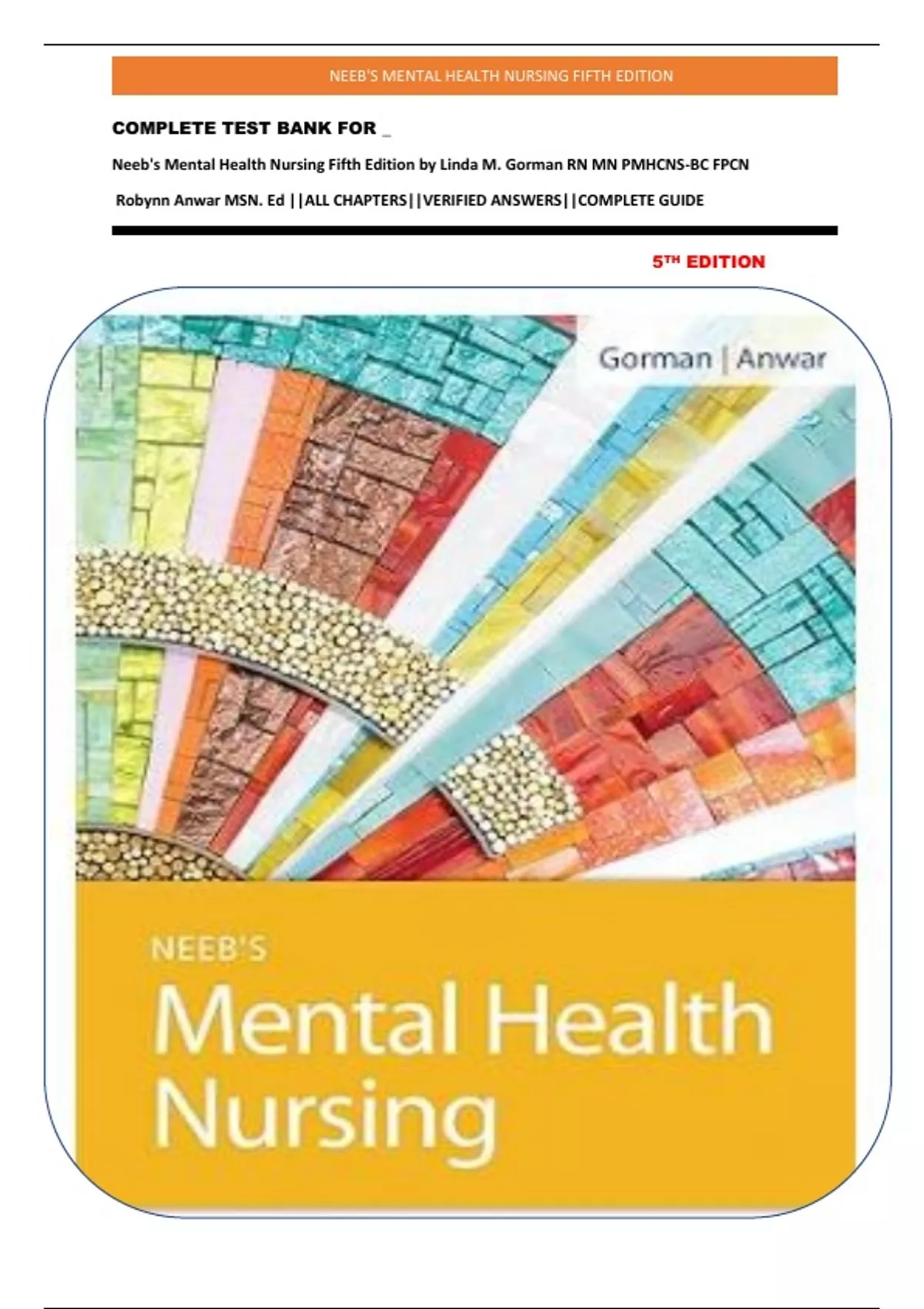 Neeb's Mental Health Nursing Fifth Edition by Linda M. Gorman RN MN PMHCNS-BC FPCN