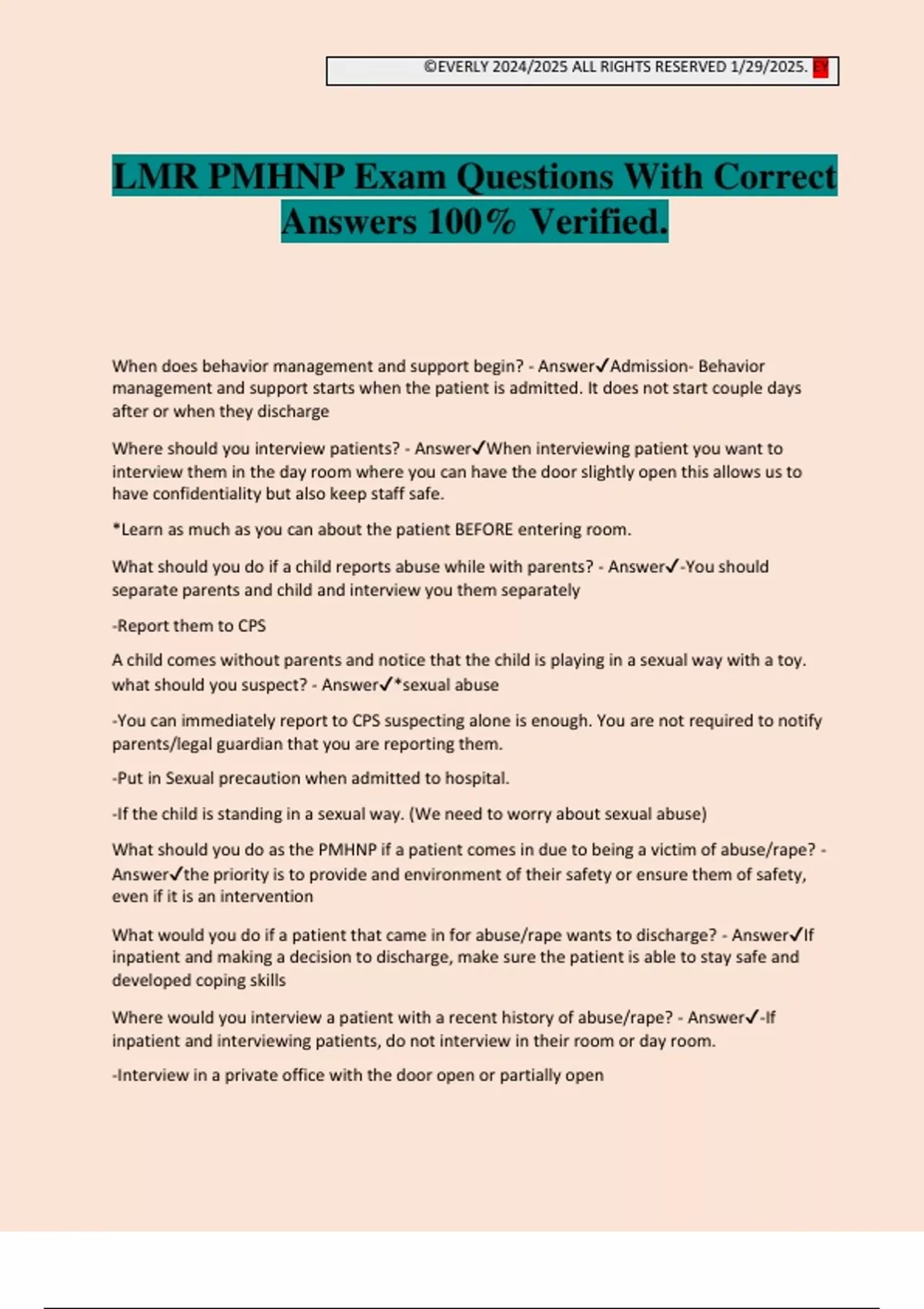 LMR PMHNP Exam Questions With Correct