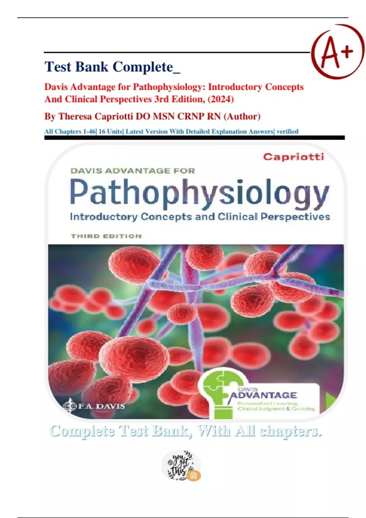 Theresa Capriotti Davis Advantage For Pathophysiology Introductory Concepts And Clinical Perspectives 3rd Edition, (2024)