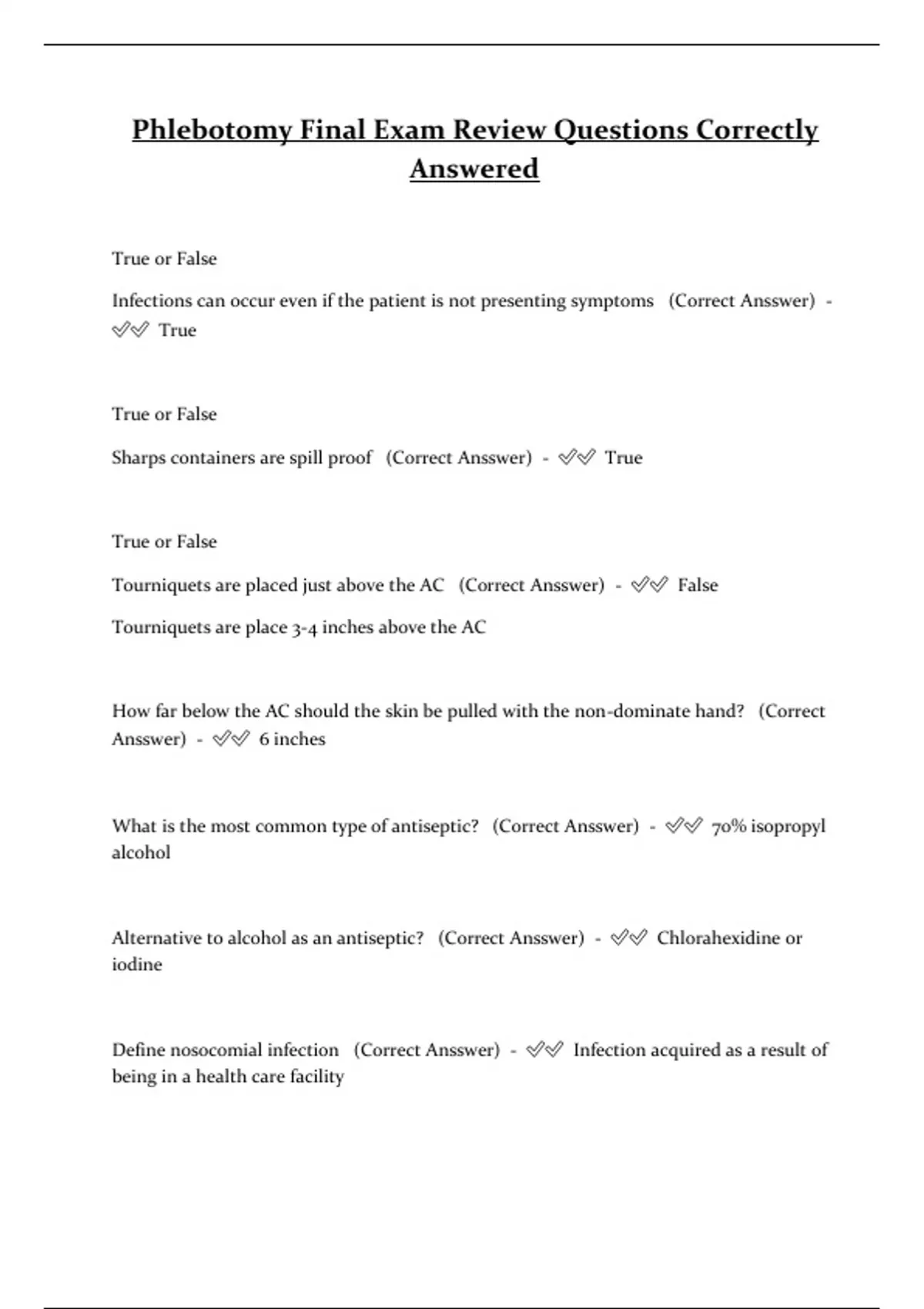 Phlebotomy Final Exam Review Questions Correctly Answered
