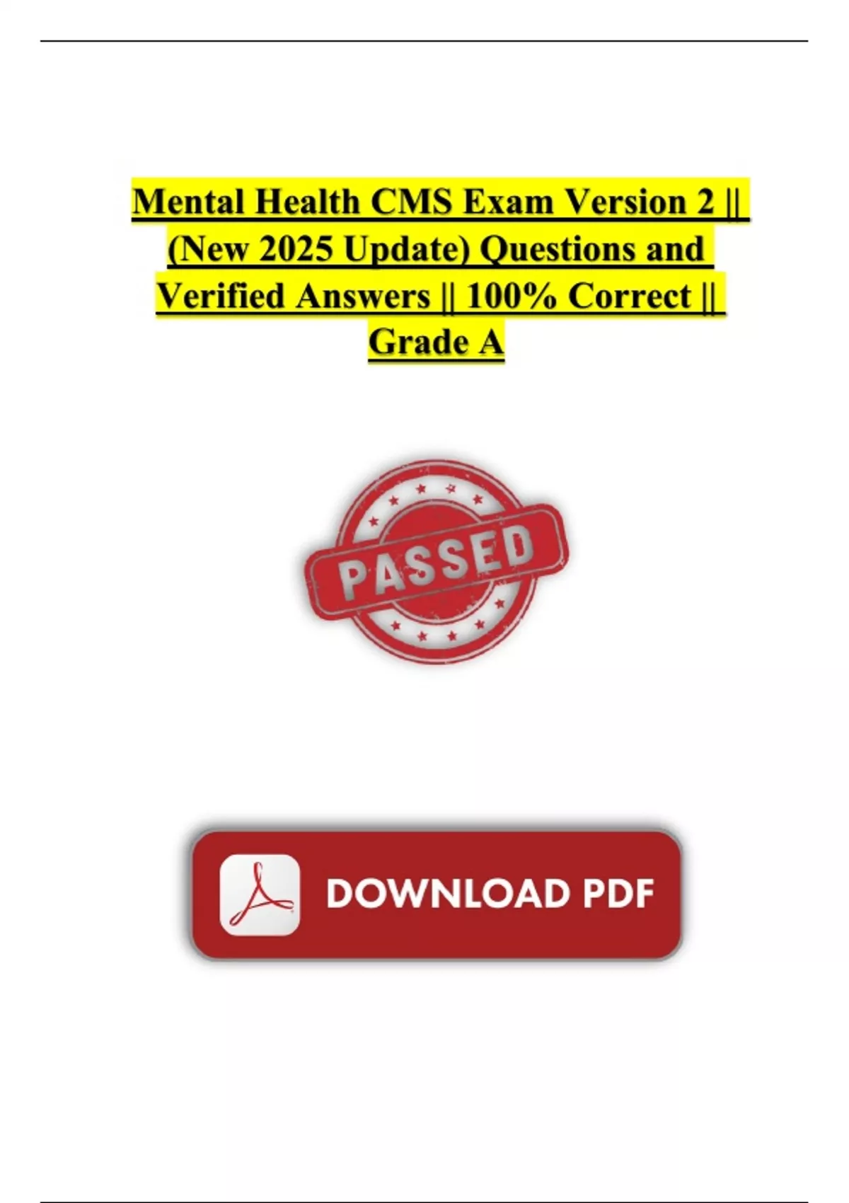 Mental Health CMS Exam Version 2 || (New 2025 Update) Questions and Verified Answers || 100% Correct || Grade A